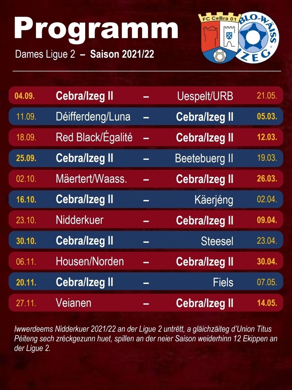D'Spillpläng vum Dammechampionnat 2021/22 sinn do!